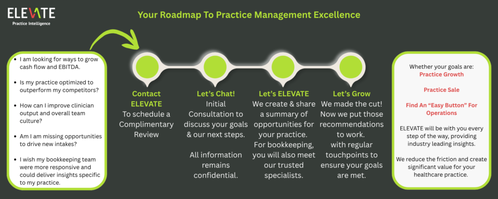 There is no prescribed time to begin using ELEVATE’s services. Whenever you feel your practice could benefit from specialized practice management, operations support, or clinic-specific bookkeeping, we are here to help. We work with everyone from individual startup clinics to large, multi-site healthcare organizations.